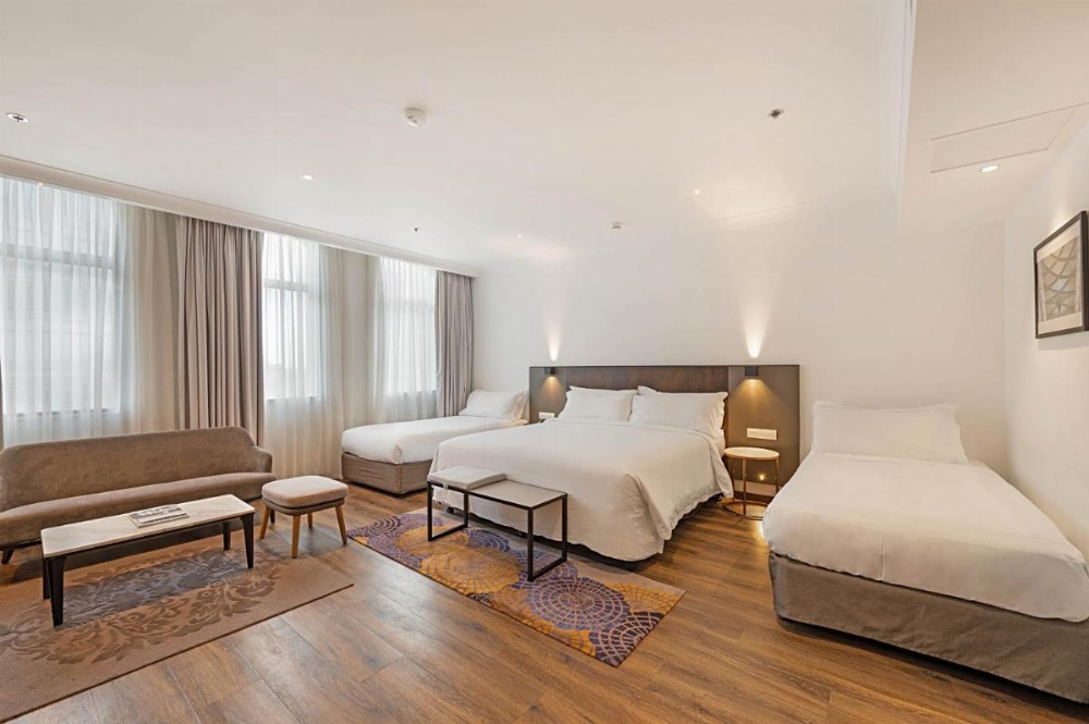 Providing free toiletries and bathrobes, this family room includes a private bathroom with a shower, a hairdryer and slippers. The family room provides air conditioning, a mini-bar, a tea and coffee maker, a wardrobe and a flat-screen TV. The unit offers 3 beds.